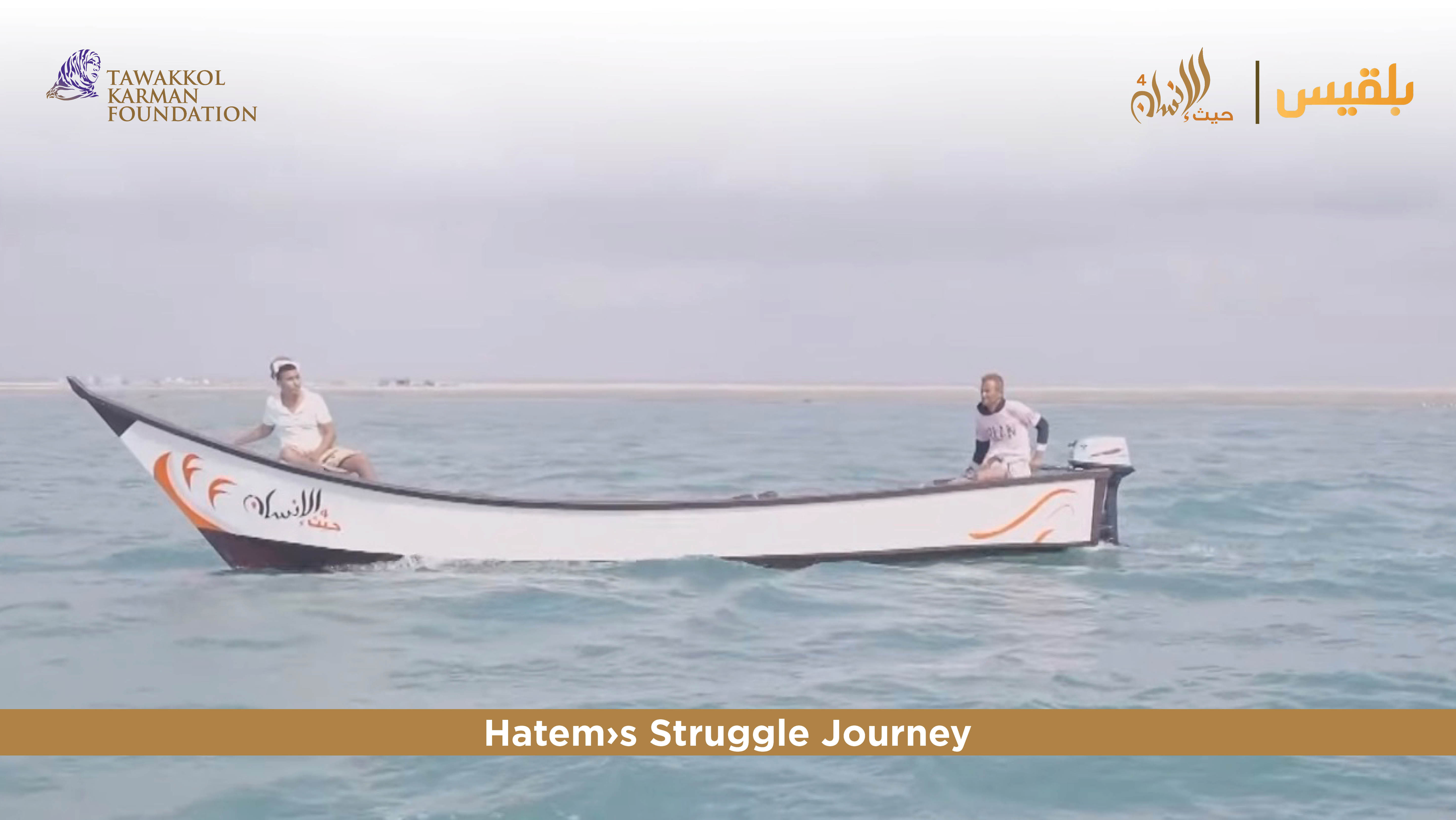 Hatem, a local fisherman, says his entire village wwas displaced after the intensification of the war, leadign him and others to settle in the "Abukh" refugee camp in Djibouti. Hatem narrates his tragedy after the destruction of his boats due to the war, when the people lost 65 fishing boats, and says that the most difficult scene was when the port of Mocha was subjected to a series of air raids. After the liberation of the city of Aden, Hatem returned to settle there. However, he was unable to find employment due to the eroding economy. In response, Tawakkol Karman Foundation provided one fishing boat for Hatem and another for his son, as well as complete fishing equipment.