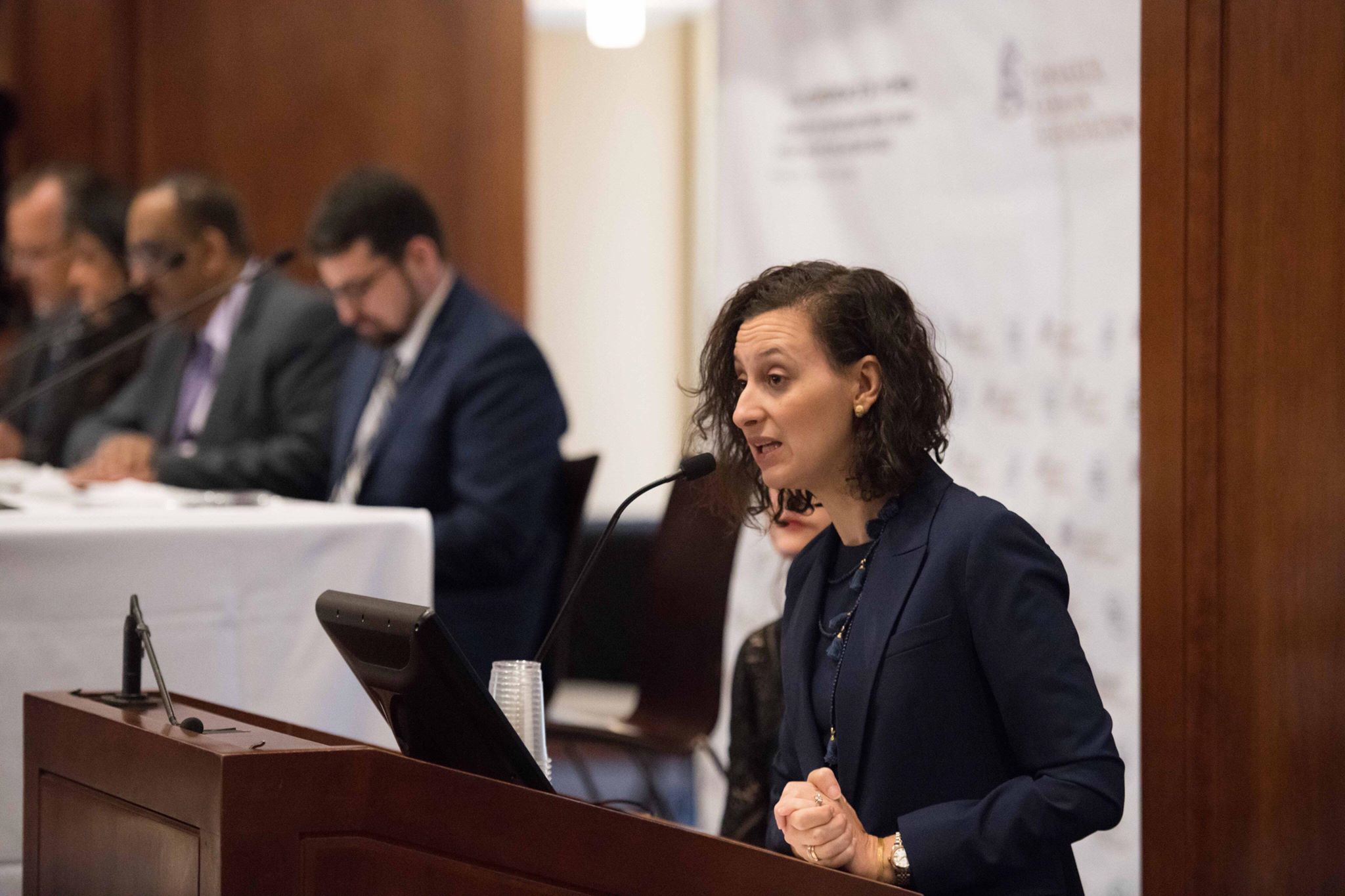 Nasser Zawia’nın yönettiği birinci oturum, çatışmanın temel sebeplerini ele alarak ülkedeki güç çekişmelerini açıkladı. Ardından Dalia Fahmi’nin yönettiği ikinci oturumda insani kriz ve tabanda hissedilen etkisi incelendi. Uluslararası Af Örgütü’nün kıdemli kriz danışmanı, ülkedeki afetin insan kaynaklı olduğunu ve uluslararası taraflarının büyük etkisi olduğunu, aslında çok şey yapmak mümkünken hiçbir tarafın istekli olmadığını vurguladı.