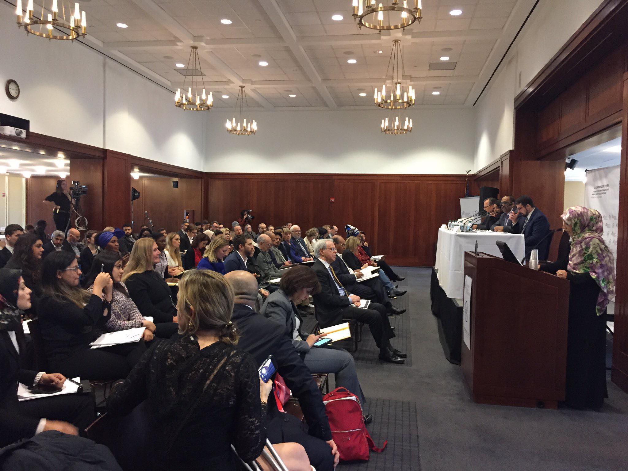 Konferans, New York Belediyesi Göçmen Departmanı Komiseri Bitta Mostofi’nin açılış sözleriyle başladı. Mostofi; Yemenli halkının gücünün ve direncinin New York’ta hissedildiğini söyledi. New York eyaleti ve şehri, ABD’deki en büyük Yemenli topluluğa ev sahipliği yapıyor. “Aramızdaki topluluklardan, birbirinden ayrı düşen ailelerin yürek burkan hikâyelerini duyduk”, diyerek Trump yönetiminin seyahat yasağının en çok Yemenlileri vurduğunu ifade etti. Geçen yılda Yemenlilere vize onaylarında yüzde 91 azalma oldu.